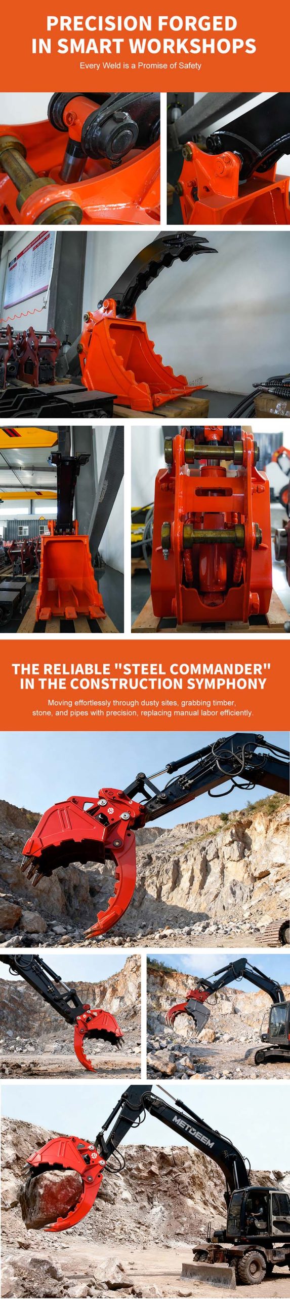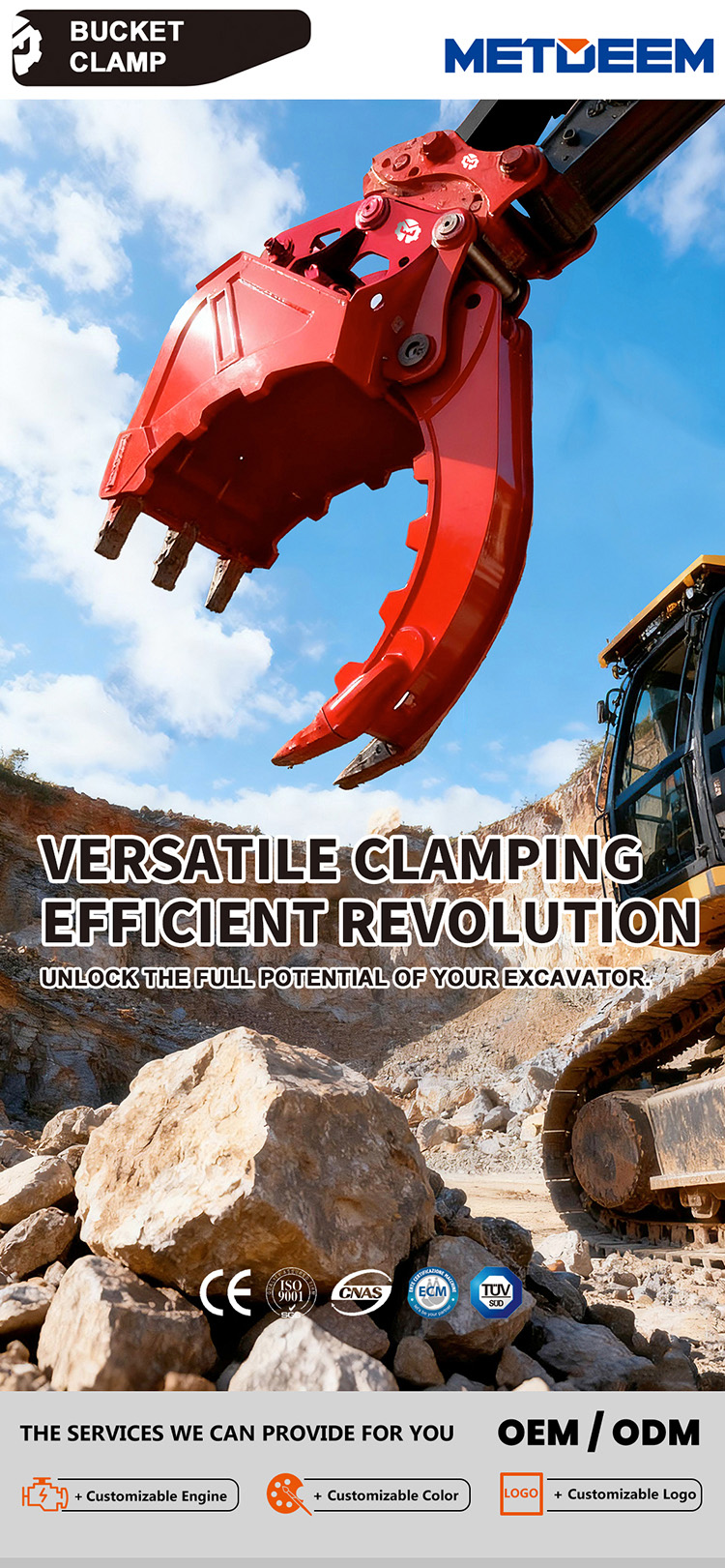 دلو الإبهام العلامة التجارية METDEEM يعمل بسرعة ، عندما لا تستطيع دلو الاحتفاظ به ، يظهر الإبهام مفيدًا للغاية. يقدم الإبهام حركة اختيار ووضع الأشياء الكبيرة والمحرجة مثل الصخور والجذوع والأنابيب والأخشاب والألواح الخرسانية وغيرها من الحطام.