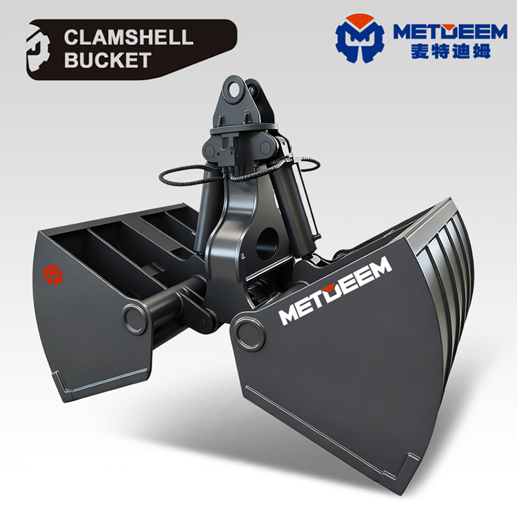METDEEM Clamshell Bucket, bulk material grab, excavator attachment, port handling, mine wear-resistant bucket