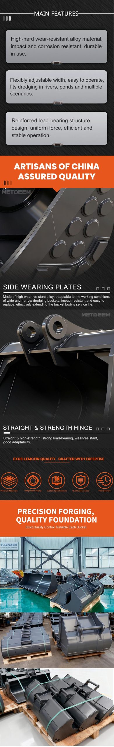3. Buckets width can be adjusted.It can cover large-scale riverbed dredging and penetrate into narrow ditches for operations, flexibly adapting to various tasks.