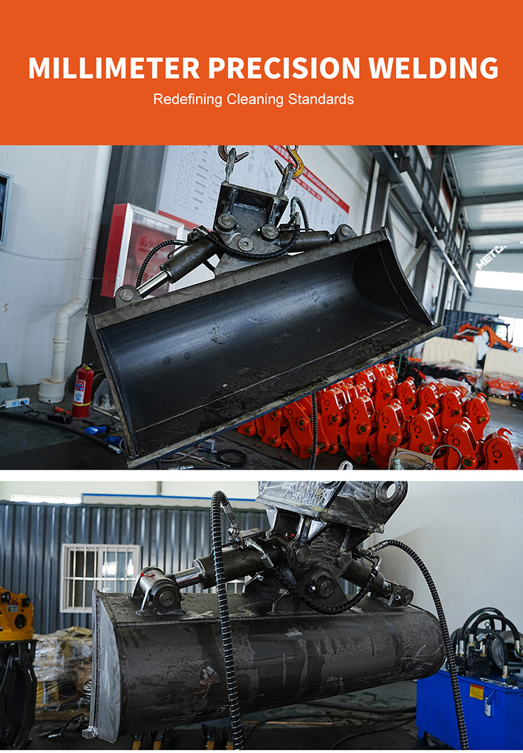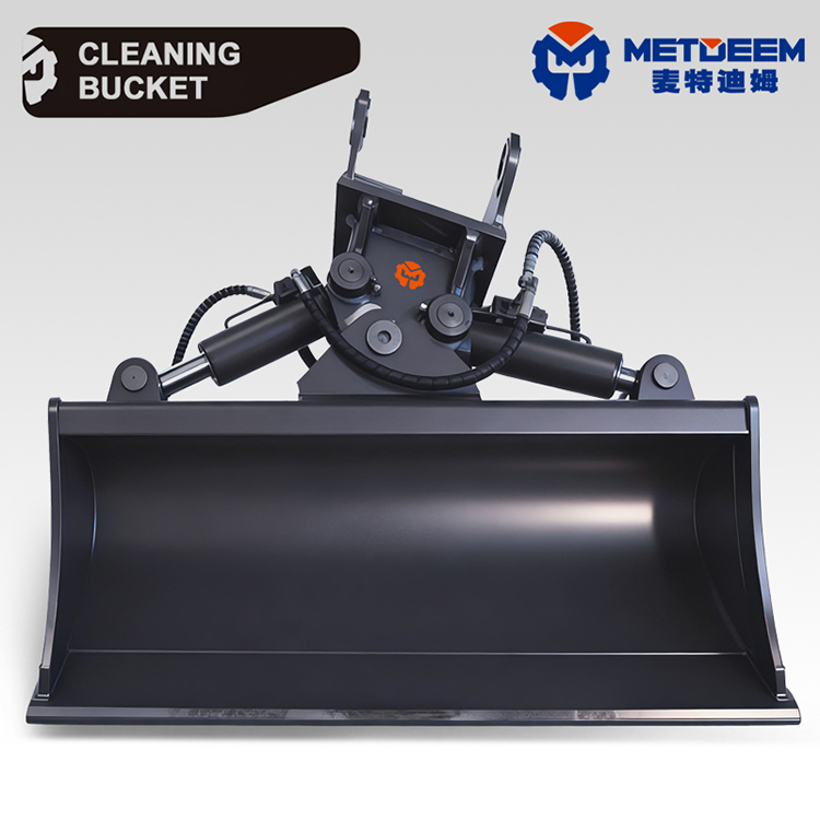 METDEEM tilting bucket is the “smart arm” for terrain trimming. Its greatest advantage is that it enables the bucket to swing flexibly left and right, thus achieving the goal of “the bucket motor remaining stationary”. When trimming slopes, river channels or conducting fine leveling , there is no need to frequently move the large machine body. This not only reduces equipment wear and fuel consumption significantly , but also achieves unprecedented operational accuracy and efficiency. It is sturdy and durable, widely adaptable, making complex terrain operations simple, economical and efficient.