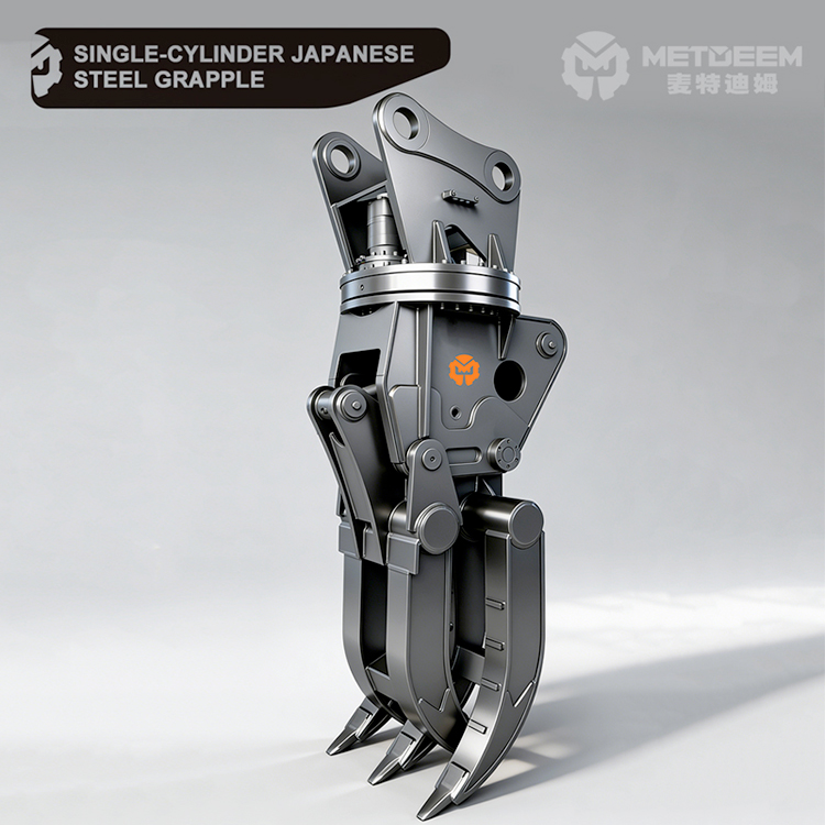 METDEEM rotary steel grab can achieve a rotation of 360 degrees and is mainly divided into two types: single cylinder and dual cylinder steel grabs.