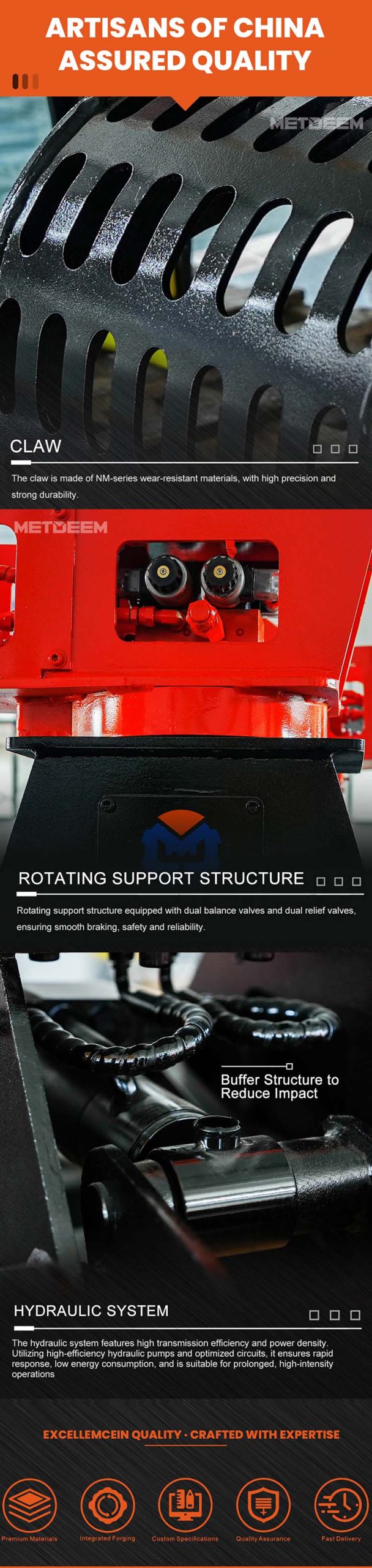 Metdeem Hydraulic Demolation Sorting Grapple –Core Highlights of the Product