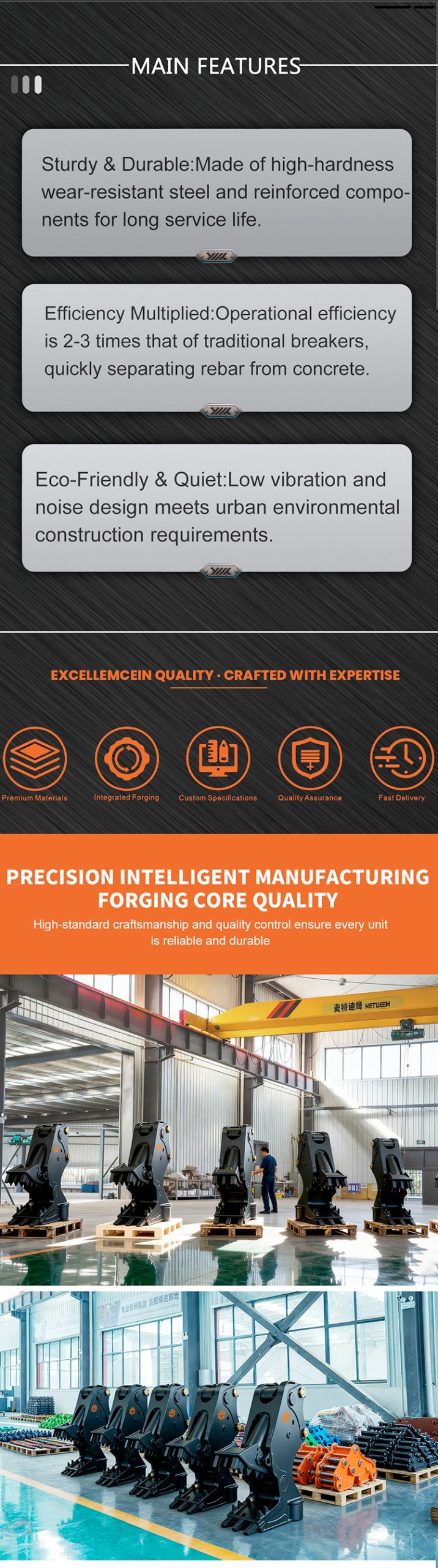 Metdeem Excavator Magnet Pulverizers are used for separation of reinforced concrete,concrete block crushing,construction waste recycling.